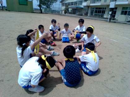 3・4年生 体育の学習2 公開日 2024/04/26 更新日 2024/04/26 4年生 実際にリレーをしてみて、うまくいかなかったことなどをみんなで集まり反省会をしました。4年生が率先して意見を出し合っていました!