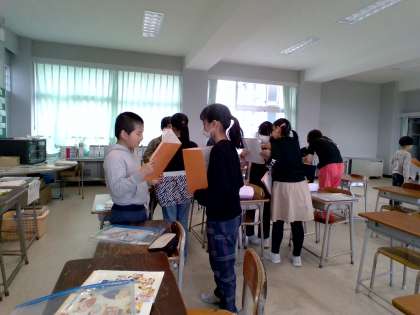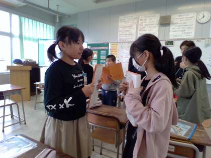 4年生 英語の学習 公開日 2024/05/01 更新日 2024/05/01 4年生 自分の好きなものを英語を使って伝え合いました。ホワイトボードに書いてある言葉を使おうと、確認しながら英語で伝え合っていました。