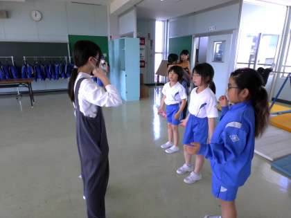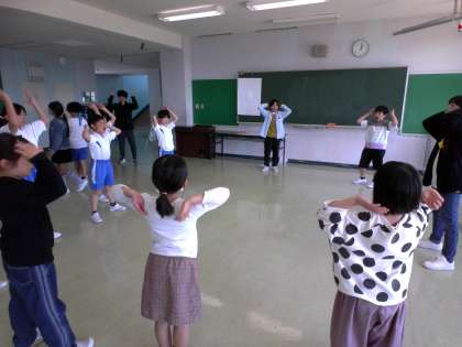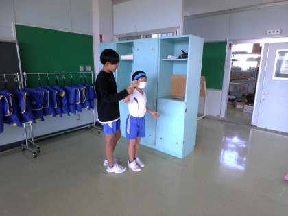 昼休憩時間に、自主的に応援練習を行っていました。終わったあとに6年生に話を聞いてみると、「自信がなさそうだったから、もっと自信をもって下級生ができるようになってほしい」とこのあとの目当てを述べました。