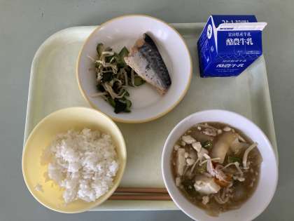 5月2日の給食 公開日 2024/05/02 更新日 2024/05/02 メール用カテゴリ 今日の給食は ごはん ぎゅうにゅう さばのみそに ごまずあえ とうふとやさいのうまに です。 今日もおいしくいただきました。