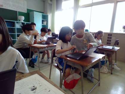 1年生 クロームブックの使い方 公開日 2024/05/08 更新日 2024/05/08 1年生 6年生のお兄さんお姉さんに、クロームブックの使い方を教えてもらいました。パスワードを自分で入力して、立ち上げることができるととても嬉しそうにしていましたよ!