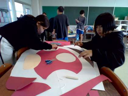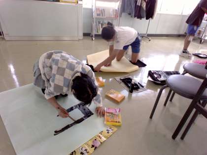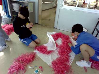 5・6年生で応援で使うものなどの制作をしました。役割ごとに分かれて、みんな真剣に取り組んでいました。