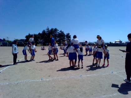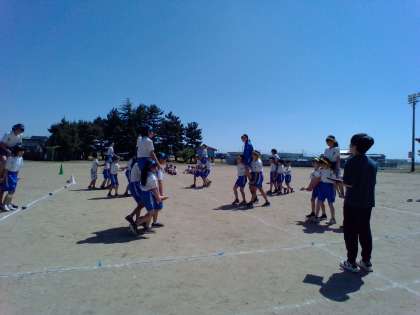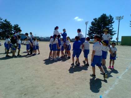 騎馬戦の時の移動の仕方や、戦うときの合図について確認しました。気の緩みから怪我に繋がらないよう、みんな真剣に話を聞いて、取り組んでいました。