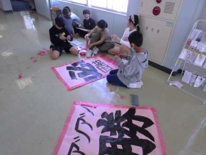 6年生 運動会に向けて 公開日 2024/05/16 更新日 2024/05/16 6年生 昨日の予行を終え、いよいよ運動会当日に向けて気合が入ってきました。 騎馬戦の作戦を立てている黄団の話を聞いていると、「Kさんが勝ってくれるはず、信じよう!」と騎手である仲間に思いをたくしている子供がいました。 赤団は、団のみんなの士気を高めようと掲示物を作成していました。青団は、応援合戦の衣装の準備を最後まで進めていました。悔いのないように、頑張りを支えていきたいと思います。