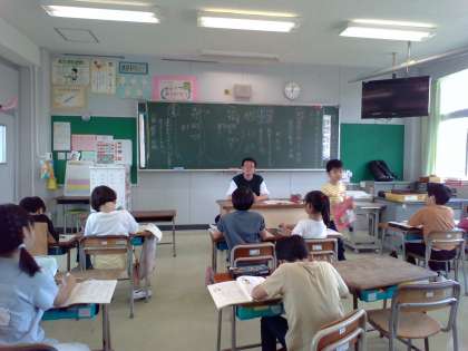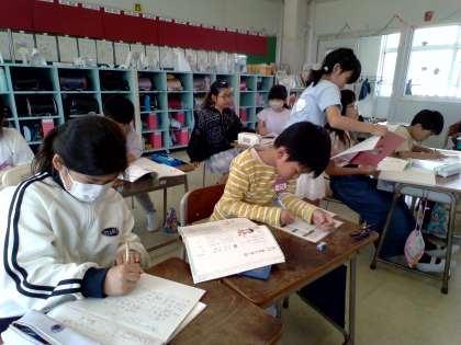 漢字の音と訓について学習しました。音読みの漢字と訓読みの漢字を使って、文章を作りました。難しかったのですが、先生の出してくれた例を見て「あ!これでできる!」とうれしそうに取り組んでいました。