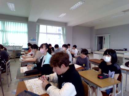 「h」「j」を使った単語の学習と、発音の違いを学習しました。「g」と「j」の発音が似ているけれど違うところを、先生に質問して学んでいました。