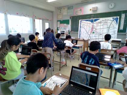 3年生 社会の学習 公開日 2024/05/21 更新日 2024/05/21 3年生 草島校下の地図を使って、地図記号を書き入れました。「ここって工場だよね?」「ここ田んぼだ!」と、クロームブックの写真を見ながら確認していました。