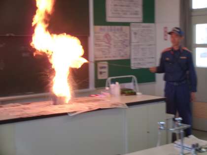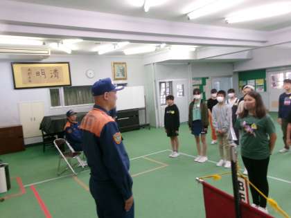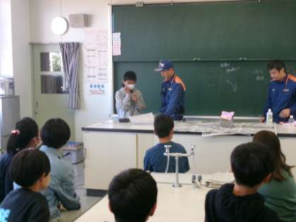6年生 BFCバッジ授与式 防火教室 公開日 2024/05/22 更新日 2024/05/22 6年生 北消防署和合出張所から3名の消防士さんをお招きし、BFCバッジ授与式と防火教室を行いました。バッジ授与では、代表児童が「BFCの一員として防火を呼びかけていきたい」と述べました。 その後に行った防火教室では、天ぷら油実験と119番通報訓練を行いました。火柱が上がった瞬間、油に水をかけたらいけないことを体感したようです。改めて、火災予防に努めようと意識を高めていました。