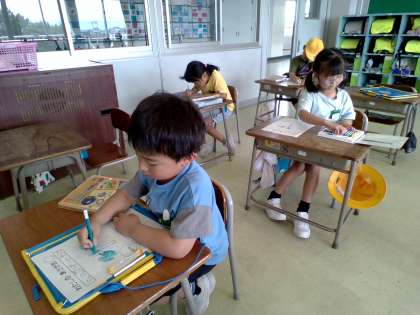 1年生 あさがおの観察 公開日 2024/05/24 更新日 2024/05/24 1年生 外に出てあさがおの観察をしました。芽が出てきたあさがおを、触ってみたりいろんな角度から見たりして観察しました。教室に戻って色を塗ったり、葉っぱの色や数を書き入れていました。