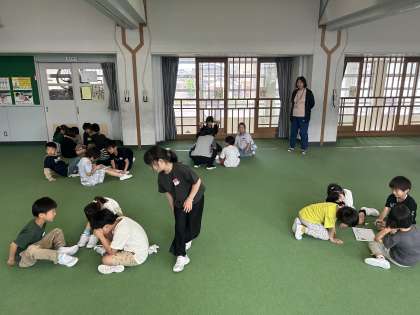 下学年遠足でもっと仲良くなれるように、3年生のリーダーが班で仲良くなる活動を考え行いました。