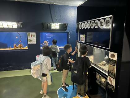 1・2・3年生 下学年遠足3「魚津水族館を探検!」 公開日 2024/05/27 更新日 2024/05/27 3年生 いよいよ魚津水族館を探検します。 班の人と、今日、自分の1番のお気に入りの生き物を探したり、不思議な生き物を探したりするなど、3年生を中心にマナーを守って見学していました。