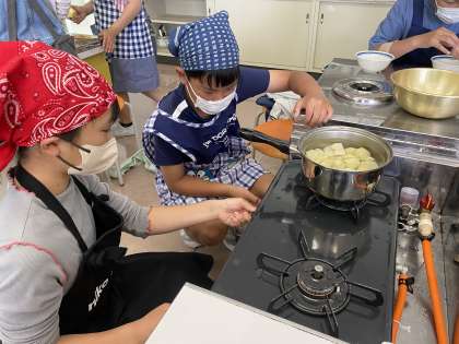 家庭科の調理実習で「じゃがいも」と「卵」を茹でました。ピーラーを使ってじゃがいもの皮をきれいに剥く子供や、卵が崩れないように丁寧に殻を剥く子供の姿がたくさん見られました。