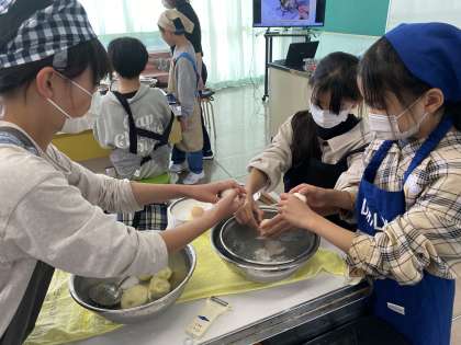 5年生 調理実習(じゃがいもと卵) 公開日 2024/05/29 更新日 2024/05/29 5年生 家庭科の調理実習で「じゃがいも」と「卵」を茹でました。ピーラーを使ってじゃがいもの皮をきれいに剥く子供や、卵が崩れないように丁寧に殻を剥く子供の姿がたくさん見られました。