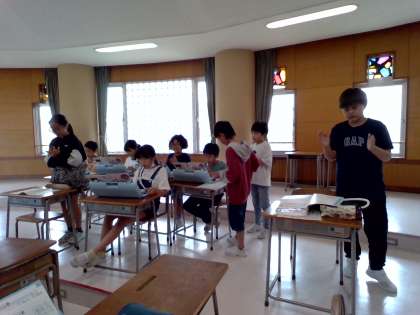 「クラッピングファンタジー」のグループ発表をしました。互いに聴いて、感想を伝え合いました。