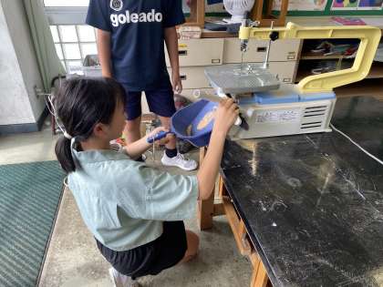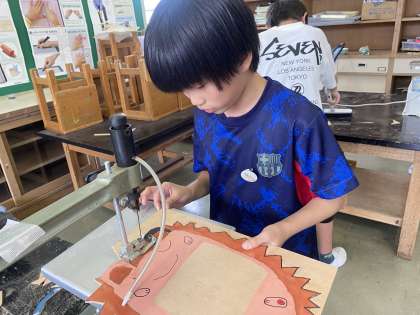 5年生 電動糸のこぎりを使って 公開日 2024/06/07 更新日 2024/06/07 5年生 5年生は図工の時間に、電動糸のこぎりを使って「伝言板」を作っています。毎時間、安全に気を付けて、自分の思い通りの形に切ることができています。また、後片付けのときは、掃除をがんばる姿も見られます。