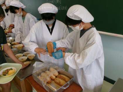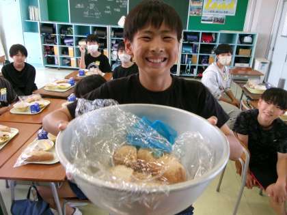 6年生 揚げパン 公開日 2024/06/11 更新日 2024/06/11 6年生 朝の会で揚げパンが話題になりました。子供たちの半分くらいが食べたことが無いから楽しみだと話していました。給食時間になると「揚げパンって作る方も準備も手間がかかるんだね」と配膳していました。お代わり分も嬉しそうな表情で食べていました。