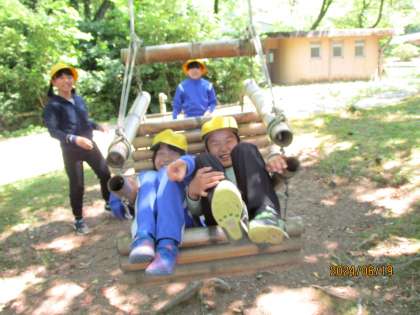 呉羽校外学習の午後の様子です。午後の活動では、竹ジャングル、池遊びをしました。自然とふれあいながら全力で楽しみました。