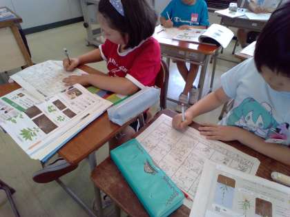 植物の成長について、まとめていました。表にしてまとめていて、絵を入れたり赤色で書き入れたりしてまとめていてました。