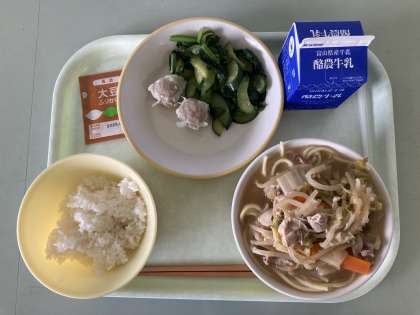 6月21日の給食 公開日 2024/06/22 更新日 2024/06/22 メール用カテゴリ 今日の給食は ごはん ぎゅうにゅう 肉しゅうまい しょうがひたし とんこつラーメン だいずふりかけ です。 野菜たっぷりのとんこつラーメンでした。 今日もおいしくいただきました。