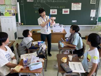 5年生は養護教諭の先生と一緒に、正しい歯の磨き方について学習しました。まず、カラーテスターを使い、歯の汚れを確かめました。その後、歯ブラシを使って丁寧に歯垢を取り除き、きれいな歯にしました。これからも、正しい歯磨きを続けて、美しい歯を保ってほしいと思います。