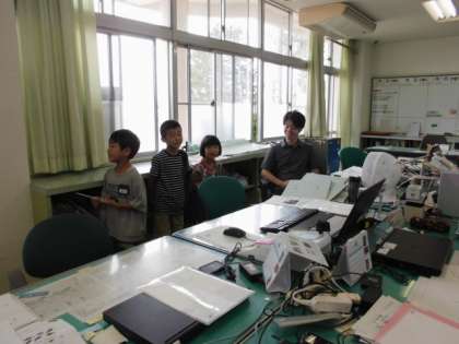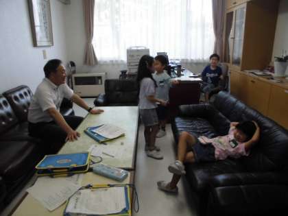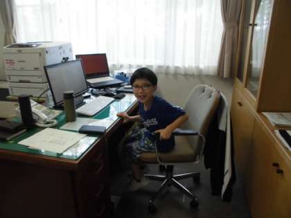 学校たんけんをしました。職員室では、「どんな仕事をしていますか」などと、進んで質問していました。校長室では、校長先生と楽しそうに話してくつろいでいる姿が見られました。普段あまり入れない場所もたんけんできて子供たちは大満足の様子でした。