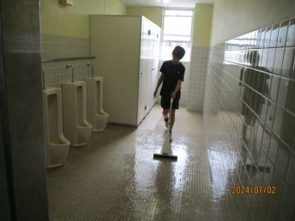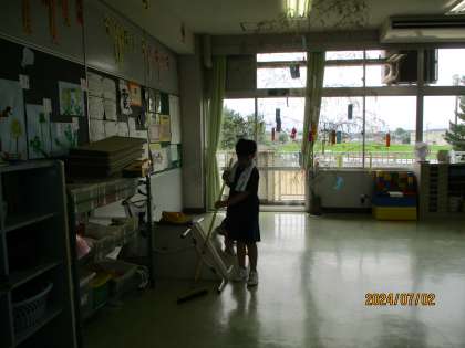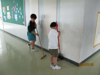 また、自分の担当場所の清掃が終わると、もっときれいにできる場所を探して、時間いっぱい取り組む姿が見られます。