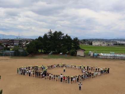 創校150周年記念行事の1つ、航空写真と全校写真の撮影を行いました。航空写真は、ドローンからの撮影でした。