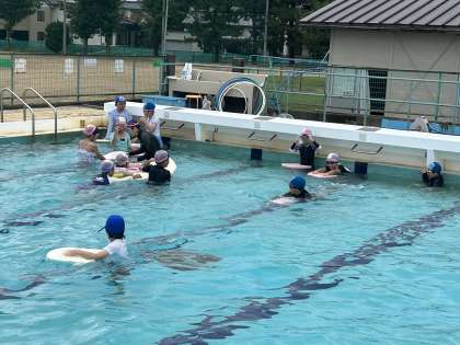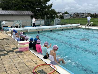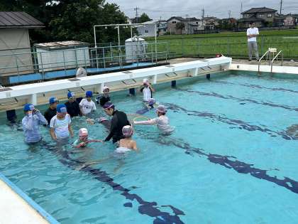 3・4年生 「水泳教室1日目」 公開日 2024/07/11 更新日 2024/07/11 3年生 水泳教室を行いました。指導員の先生3名に来ていただき、泳ぎ方などを教えていただきました。 子供たちは、一人ひとり目当てをもって学習に取り組みました。顔に水をつけることができるように、バタ足が上手にできるようになど、一つ一つできることを楽しんでいました。