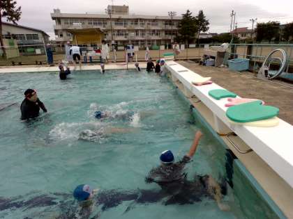 3・4年生 水泳教室2日目1 公開日 2024/07/12 更新日 2024/07/12 3年生 今日は、昨日よりグレードアップした内容で、教えていただきました。 このグループは、ペアでクロールの練習をしたり背泳ぎやバタフライの練習もしたりしていました。