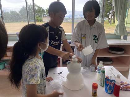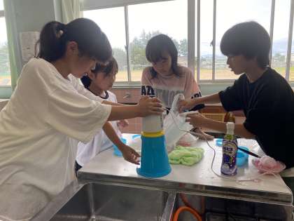 家庭科の時間にかき氷をつくりました。班のみんなで材料を持ち寄り、様々な味のかき氷に仕上げていました。とても美味しかったようで、おかわりをする子供たちがたくさんいました。