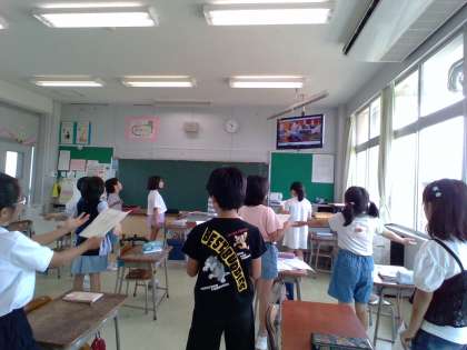 2・3年生で歌う合唱曲をみんなで聞きました。動画を見て「できるかわからないけど、あんなふうに笑顔で歌ってみたい。」「口を大きく開けてきれいな声で歌っていた。」と思ったことを発表していました。曲がかかると体を動かしたり、口ずさんでいました。みんなで歌う日が楽しみです。