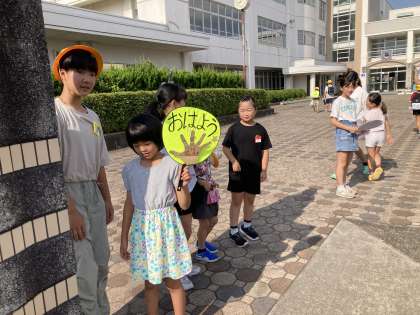 朝の様子 公開日 2024/07/23 更新日 2024/07/23 メール用カテゴリ 今日も暑い朝を迎えましたが、遠くからでも元気よく挨拶をしてくれる班がありました。また、校門前では、運営委員会の子供や自主的に挨拶当番に加わる子供たちの姿が見られました。