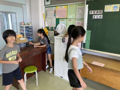 5年生 1学期おつかれさま集会(その3) 公開日 2024/07/23 更新日 2024/07/23 5年生 2番目は「宝さがしゲーム」でした。係の人が教室内に隠した宝物を、みんなで探しました。時間はかかりましたが、全員が無事に宝を見つけることができました。