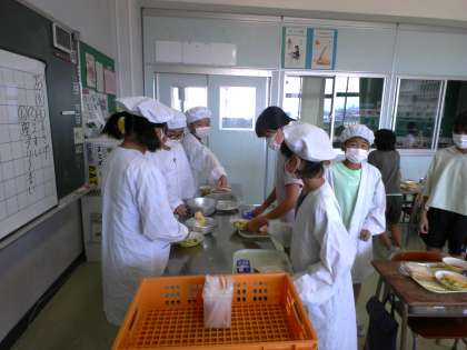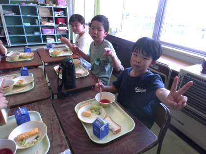 1学期最後の給食でした。調理員さんに感謝しながら、「食べきりん」しました。