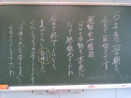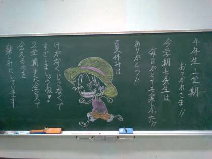 一学期最後の日を迎えました。子供たちにメッセージが書かれているクラスもありました。