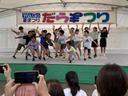 4年 和合だら祭りに出場! 公開日 2024/07/29 更新日 2024/07/29 4年生 和合だら祭りに、出場しました。 出番までみんな緊張していましたが、いざステージに上がると、元気いっぱいに笑顔で踊りました。 かけ声も会場いっぱいに広がりました。 夏休みの素敵な思い出ができました。