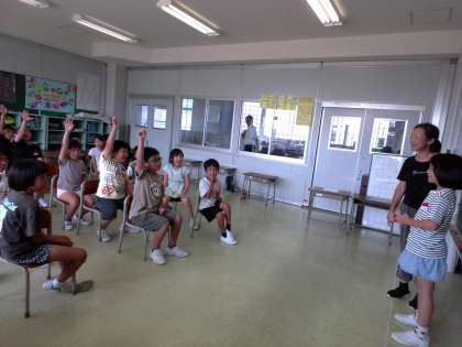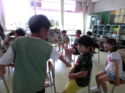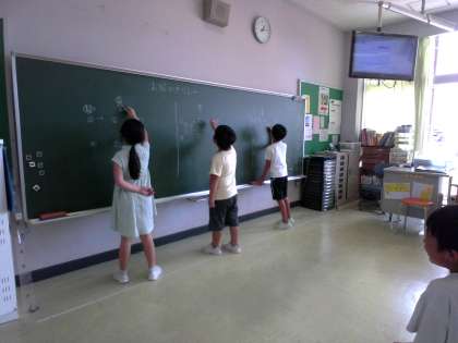 2年生 ワイドなかよしタイム 公開日 2024/08/28 更新日 2024/08/28 2年生 2学期が始まって2日目の今日、最初のなかよしタイムは学級で絵描きリレーをしました。チョークをバトンにし、3チームに分かれて、お題の絵を一人ずつ順番に描いていきました。制限時間が終わった後、なんの絵かを当てっこしたり、気に入った絵を発表したりしました。思わず笑顔になりました。