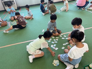 3年生 2学期も下学年朝の会スタート 公開日 2024/09/04 更新日 2024/09/04 3年生 2学期はじめての下学年朝の会を行いました。 ふれあいタイムでは、カルタを行いました。1年生にとっては1学期に勉強したひらがなを使って楽しめる活動です。3年生は読み手になったり、1年生の良いところを見つけて伝えたりしていました。