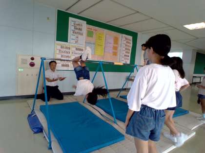 体力アップウィーク 公開日 2024/09/09 更新日 2024/09/09 学校行事 今日の体力アップウィークでは、ボッチャ、鉄棒、50メートル走に分かれて取り組んでいました。鉄棒では、校長先生から直々にアドバイスをもらい、挑戦していました。