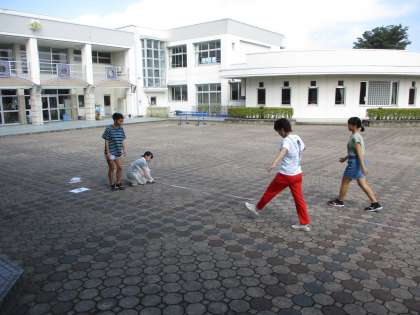 拡大図、縮図の学習を利用し、実際には図りづらい「高さ」を求めました。仰ぎ見るときの角度が図りづらかったこともあり、子供によって数値にばらつきはありましたが、おおよその高さを求めることができた様子です。