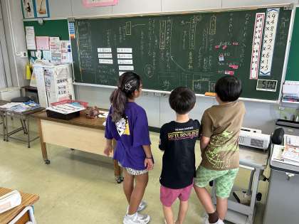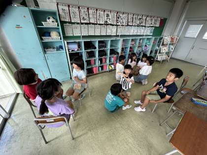 下学年の集会で中庭を使って、草島っ子の笑顔あふれる場所にしたいとみんなで考えを出し合いました。