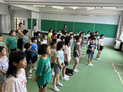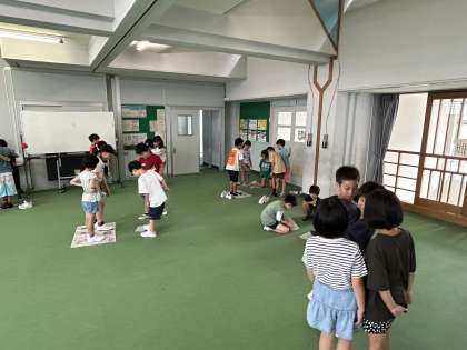 班の友達となんとか新聞紙から落ちないように協力しました。