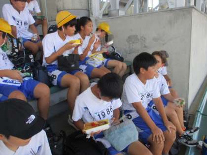 6年生 チャレンジ陸上前においしくご飯 公開日 2024/09/13 更新日 2024/09/13 6年生 競技場到着後に、日陰で食事でした。保護者の皆さんに作って頂いたお弁当をみんな喜んで食べていました。また、卒業アルバム写真に向けた撮影も行って頂きました。