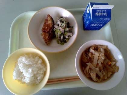 9月18日の給食 公開日 2024/09/17 更新日 2024/09/17 メール用カテゴリ 今日の給食は ごはん ぎゅうにゅう さかなのかばやき ばいにくあえ さわにわん です。 今日もおいしくいただきました。