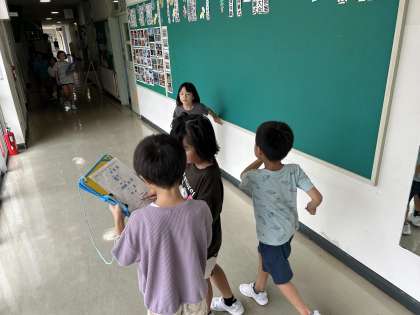 1・2・3年生 2学期がんばろう集会スタート2 公開日 2024/09/18 更新日 2024/09/18 3年生 ゲームとしてウォークラリーをしました。一年生は学校探検を生かして、2年生は1年半の経験を生かして。3年生がお互いにクイズを考え出し合いました。 ポイント探しをみんな楽しんでいました。