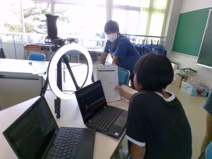 放送室からではなく児童会室が「スタジオ」となり、明日の天気やリクエスト曲、給食ジャンケンをしました。