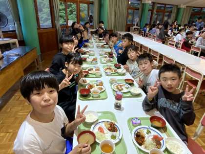 仲間と共に成長できた宿泊学習(その8) 公開日 2024/09/27 更新日 2024/09/27 5年生 夕食の様子です。たくさん体を動かしたためか、もりもり食べる子供の姿が見られ、「先生、全部食べたよ!」と教えてくれる子供もいました。
