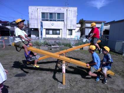 今日の街探検は、赤コース(富浦町、くさ島新町方面)です。秋晴れの空の下、町内にある3つの公園を巡りました。それぞれの公園のおすすめの遊具をみんなで楽しみました。