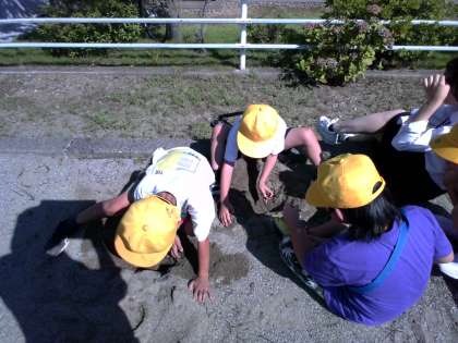 2年生 まちたんけん2 公開日 2024/09/27 更新日 2024/09/27 2年生 また、秋の公園では、小さな虫をたくさん見付けました。ジャンプするバッタを追いかけたり、何かをせっせと運んでいるアリを発見して仕事の様子を見守ったり、背中が光るきれいな虫を見付けて友達に見せたりしました。砂場では落とし穴を作るなど、それぞれの楽しみ方を満喫しました。