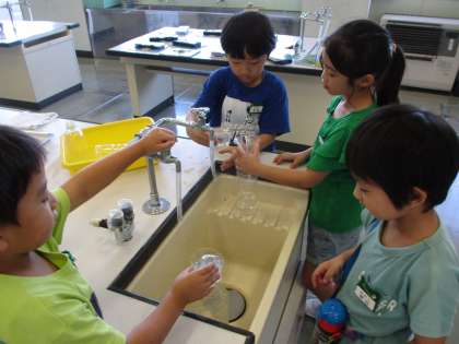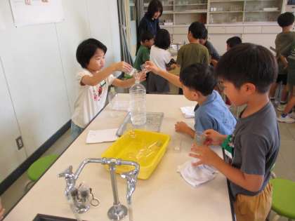 1年生 算数の学習 公開日 2024/09/30 更新日 2024/09/30 1年生 4つのペットボトルの水のかさをくらべました。友達と協力しながら、コップに何倍分かを調べ、グループの結果を発表しました。数が違うことに驚き、もう一度調べ直して、水のかさの多い順がわかりました。